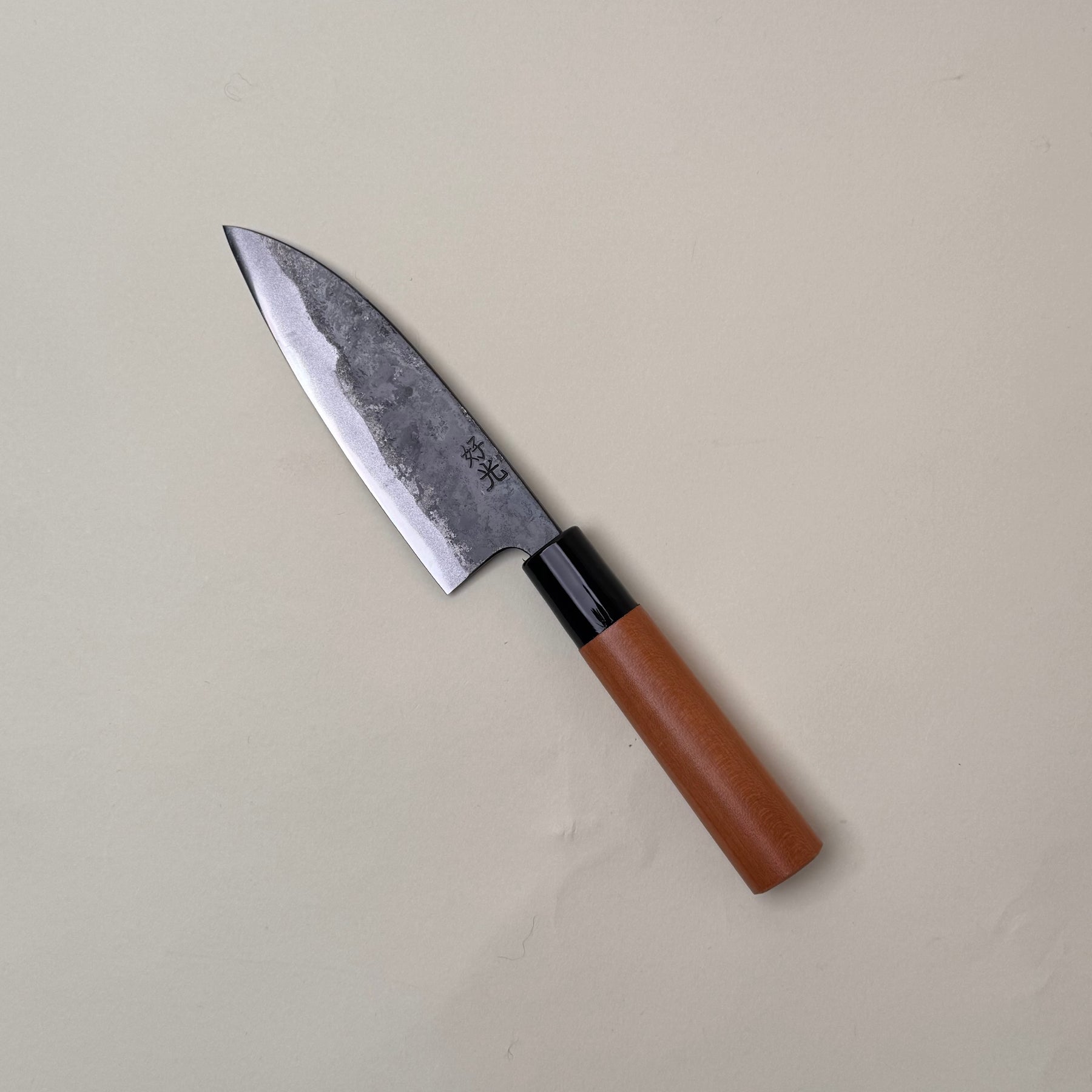 Kurouchi is the dark, rustic finish left on the blade from the forging process. It helps protect the steel from oxidation while giving each knife a unique, textured appearance. We love the kurouchi finish — it’s one of our favourites for its raw, honest look and connection to traditional forging.