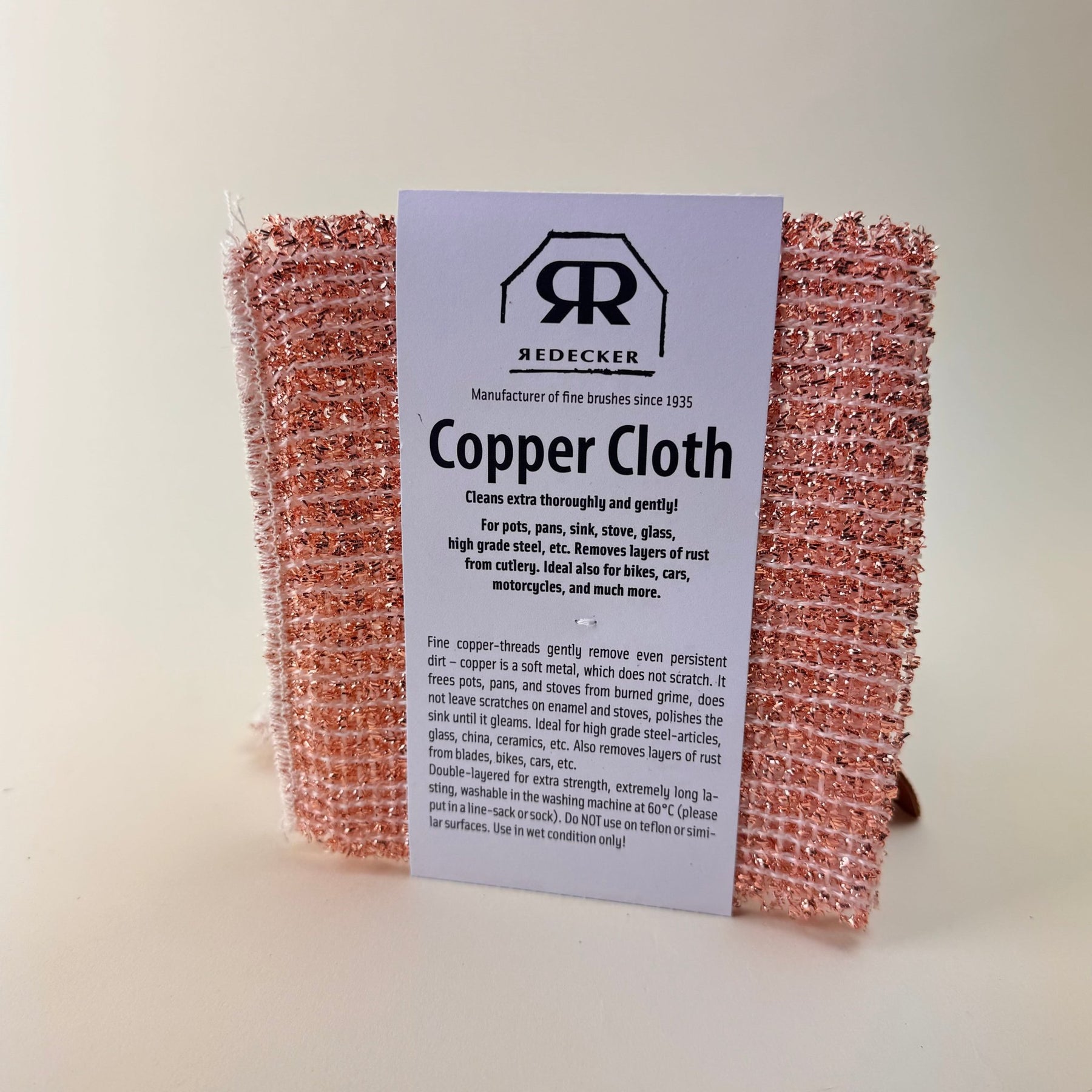 Made from ultra-fine copper threads that scrub thoroughly yet gently. When used wet, the cloth removes stubborn residue while staying kind to metal finishes and everyday kitchen surfaces.